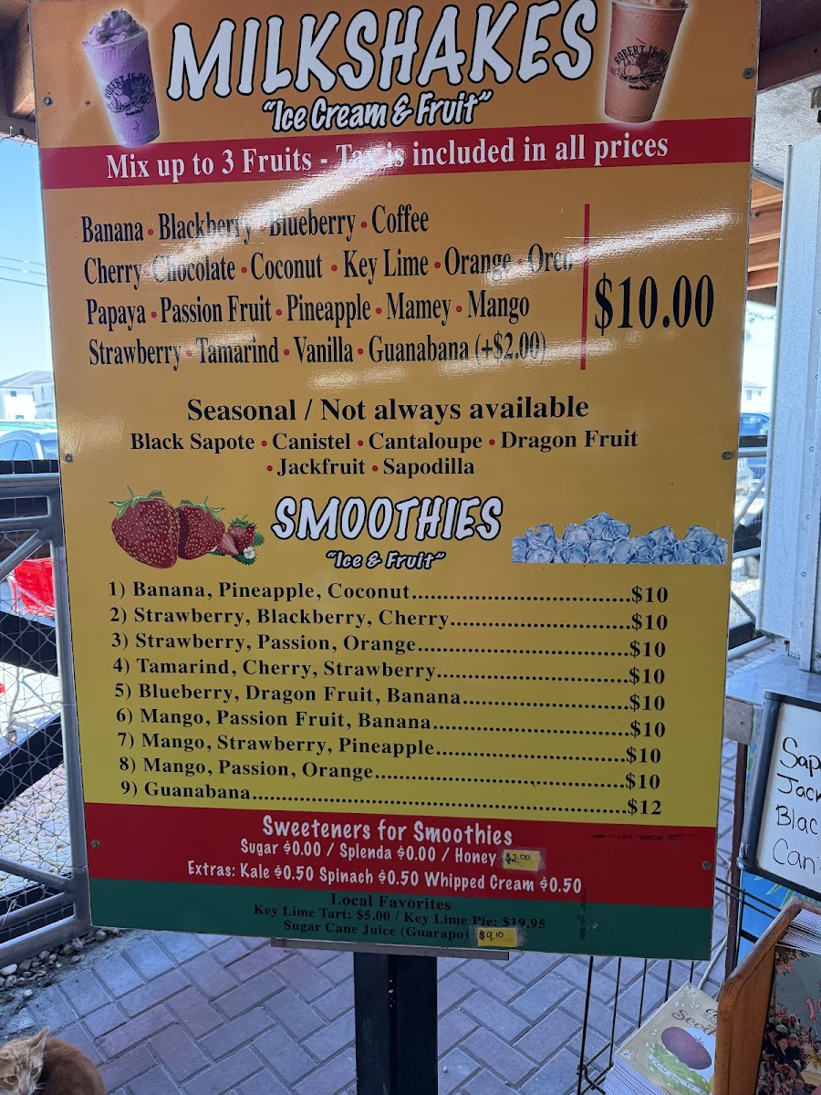 The menu at Robert Is Here Fruit Stand offers a casual and refreshing selection that perfectly complements its vibrant farm and produce market setting. It's centered around simple, wholesome items that highlight the fresh, often exotic fruits harvested locally.